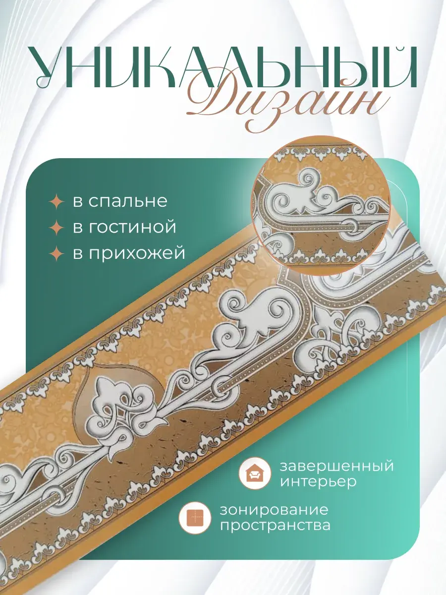 Однотонные элементы отлично дополняют обойный рисунок, создавая гармоничный визуальный эффект. Кайма с полоской или узором станет стильным акцентом, добавляя индивидуальности интерьеру. Кант подходит для использования в любых помещениях (гостиной, кухне, детской, коридоре). Его легко клеить и так же легко демонтировать.