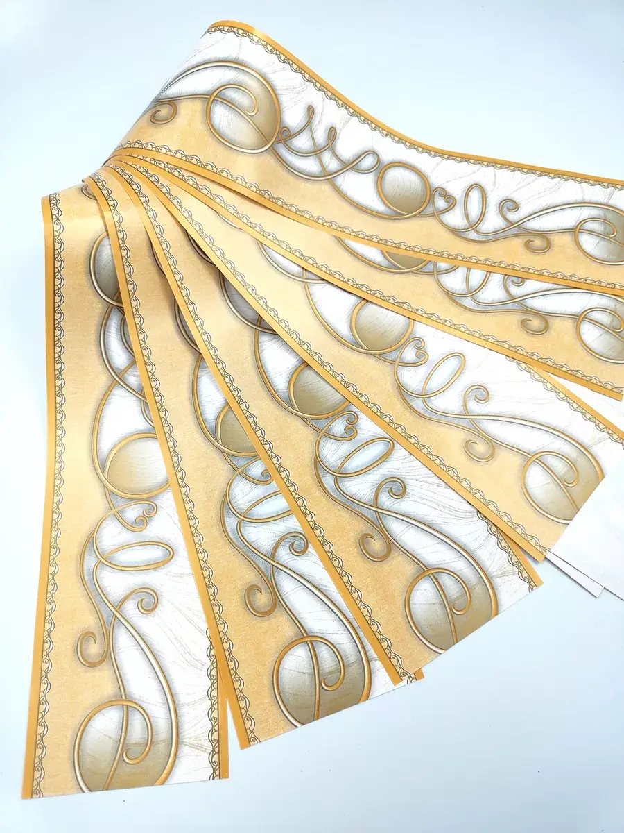 Бордюр бумажный для обоев (бордюрная лента на стену) – недорогой отделочный материал, с помощью которого можно очень быстро дополнить интерьер. Бордюры для обоев узкий или широкий (окантовка) имеют различные варианты по размерам (ширина 4,6,9,12 см.) и местам расположения. Комплект состоит из 20 полос, длина полосы 70 см., общая длина комплекта 14 м.