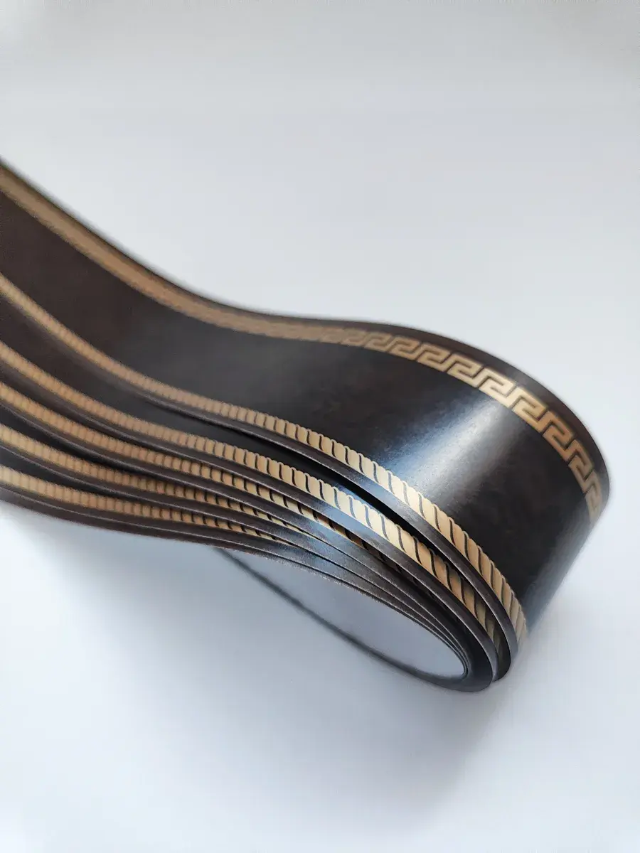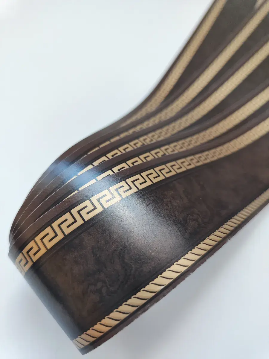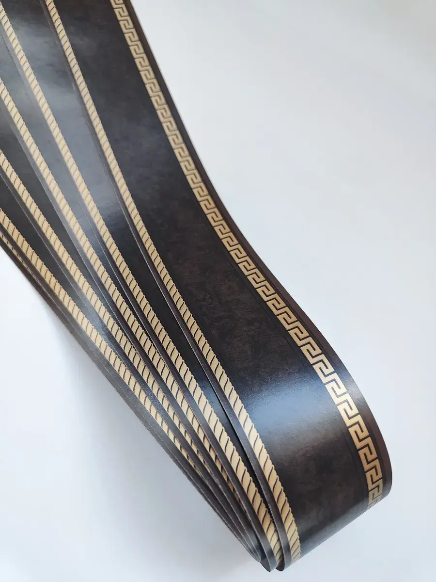 Изготовленный из бумажного материала, бордюр обладает достаточной гибкостью, чтобы легко адаптироваться к различным поверхностям, в том числе и к галтелям и потолочным стыкам. Его можно использовать как для плинтусов, так и для создания контуров и окантовки на настенных поверхностях.