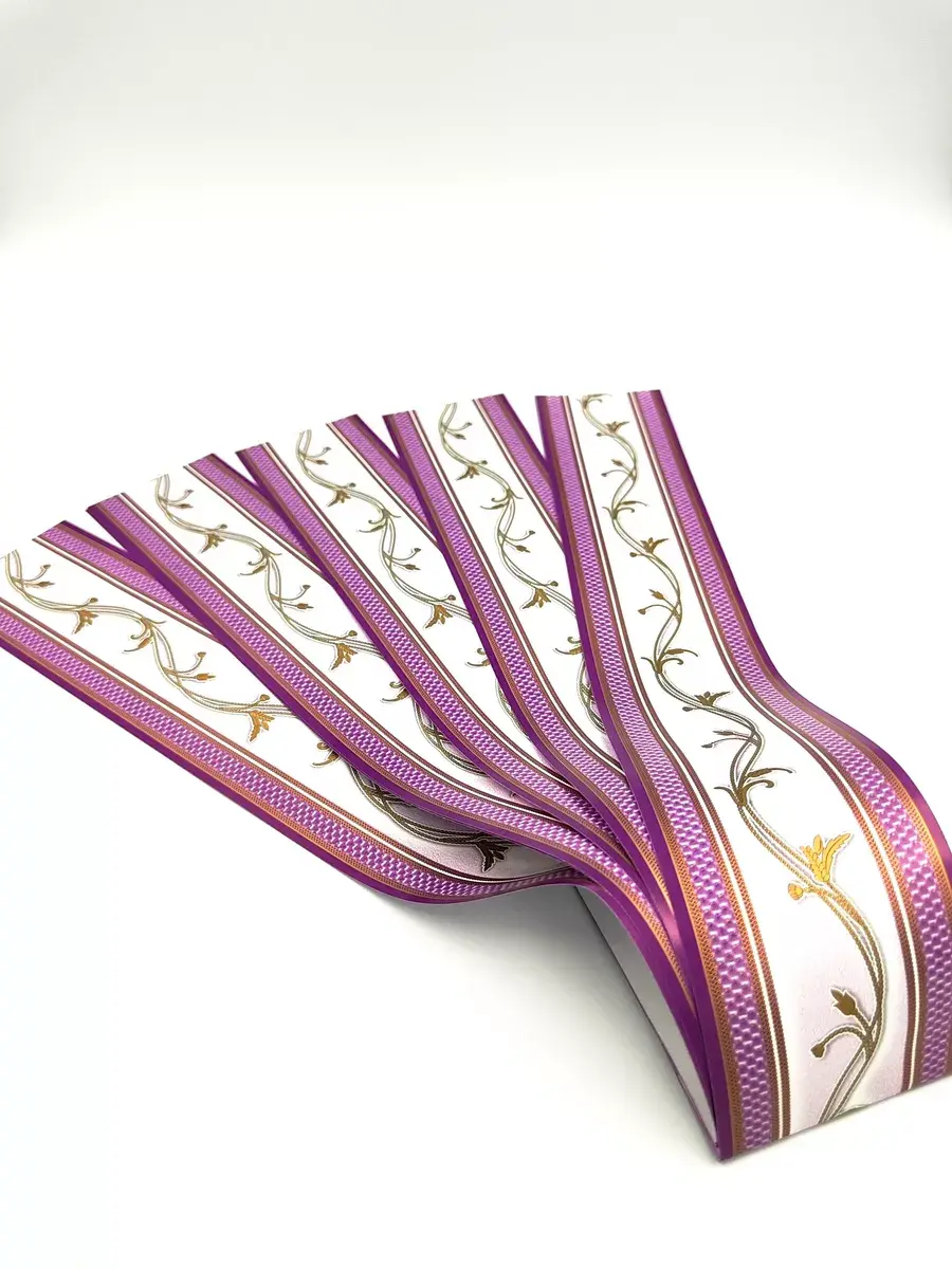 Бордюр бумажный для обоев (бордюрная лента на стену) – недорогой отделочный материал, с помощью которого можно очень быстро дополнить интерьер. Бордюры для обоев узкий или широкий (окантовка) имеют различные варианты по размерам (ширина 4,6,9,12 см.) и местам расположения. Комплект состоит из 20 полос, длина полосы 70 см., общая длина комплекта 14 м.
