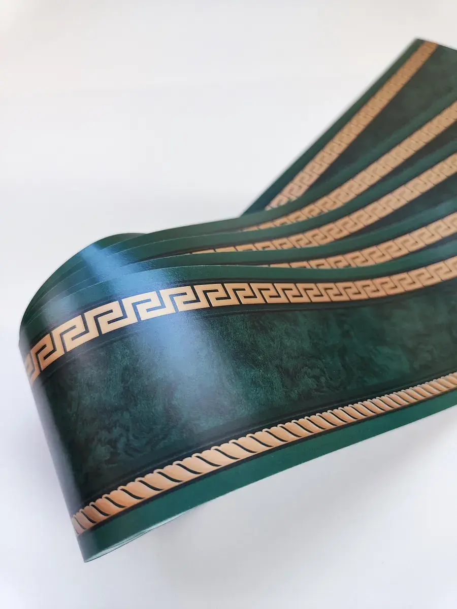 Изготовленный из бумажного материала, бордюр обладает достаточной гибкостью, чтобы легко адаптироваться к различным поверхностям, в том числе и к галтелям и потолочным стыкам. Его можно использовать как для плинтусов, так и для создания контуров и окантовки на настенных поверхностях.