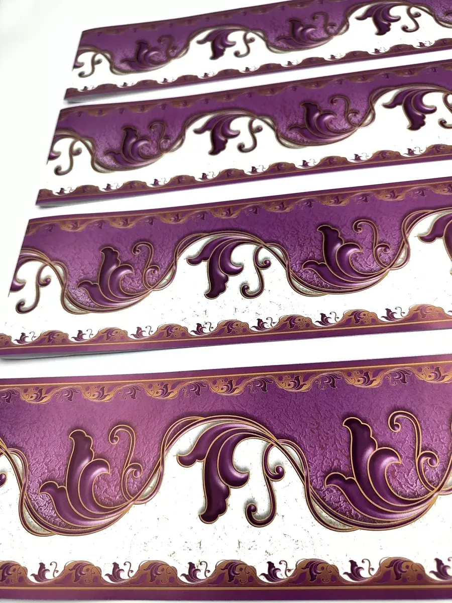 Декоративные бортики (галтели) для обоев представлены в 15 цветах (белый, бордовый, голубой, розовый, светло-бежевый, синий, зеленый, темно-коричневый, фиолетовый, светло-зеленый, серый, черный, салатовый).