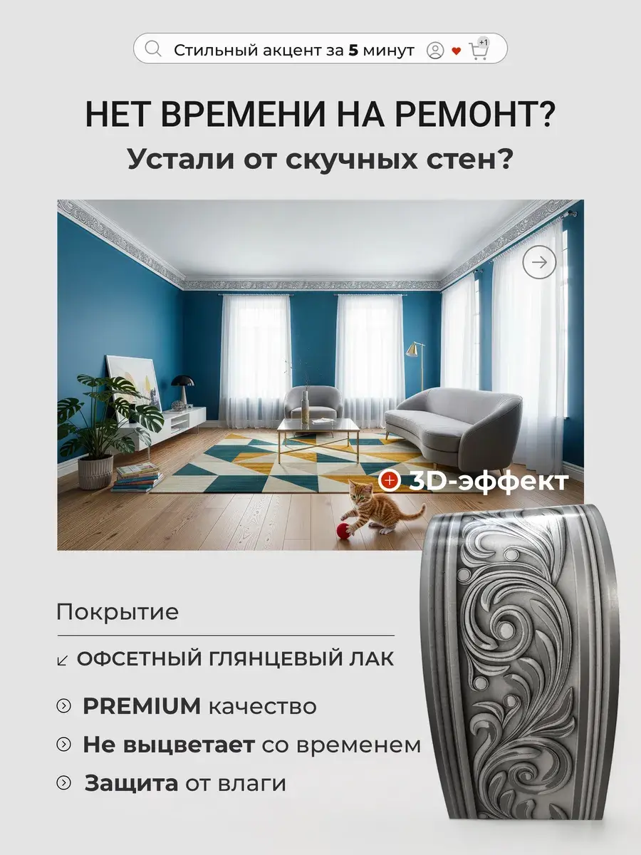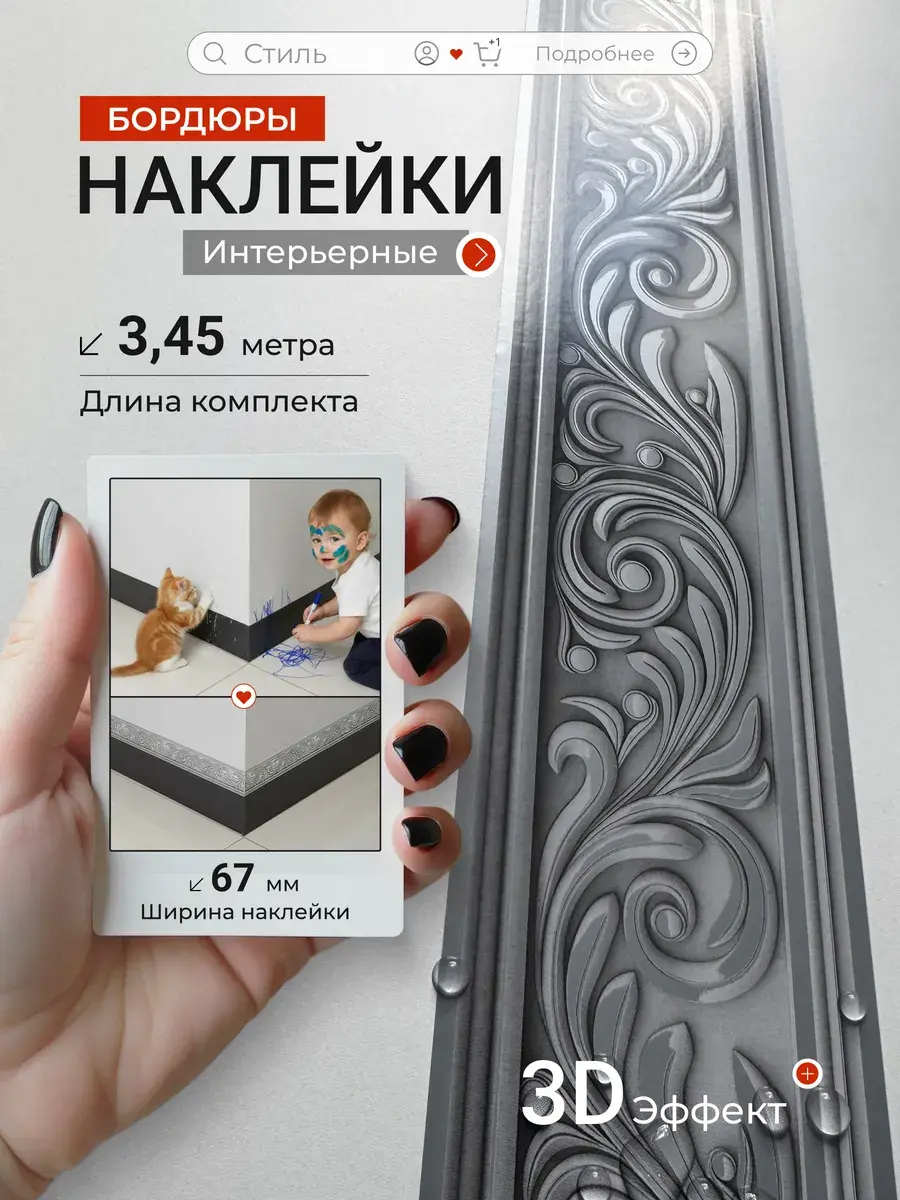 Создайте уютное пространство, обрамляя зеркала и картины, или освежите вид вашего шкафа, кухонного фасада и даже холодильника. Простота использования позволяет легко наносить их на различные поверхности, такие как дверные проемы, обои или мебель, не оставляя следов и повреждений.